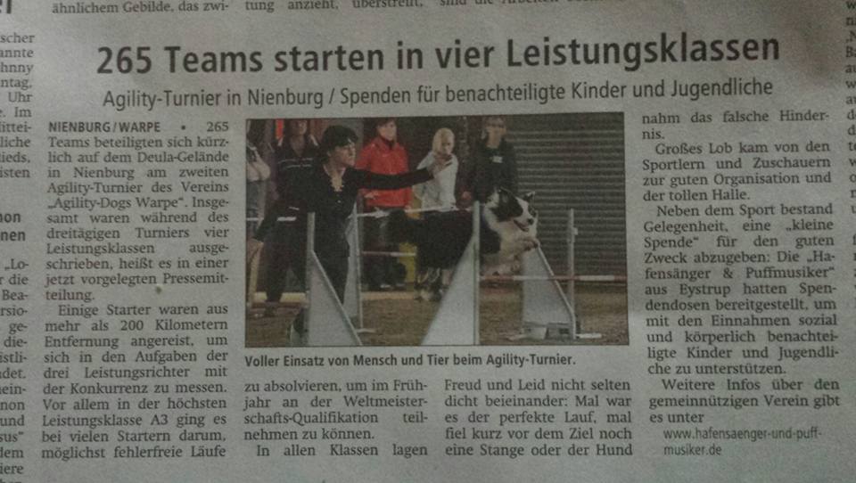 Talisman Mind The Gap "Gizmo" erschien in der Kreiszeitung Hoya. Ein schöner Bericht über das Agility Turnier in Nienburg. Wir freuen uns mit den Besitzern über die tollen Ergebnisse von Gizmo!