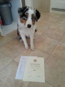 Talisman Queen of the Day "Chilli" bestand ihre zweite Gehorsamsprüfung und bekam ein Diplom! Der Test bestand aus verschiedenen Prüfungssituationen u.a. im Auto und beim Tierarzt, sowie einem Gehorsamsteil.