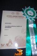 Talisman Special Guest at Zharmant "Metku" wurde von ihrer Besitzerin Mia aus Finnland auf einer Ausstellung in Litauen präsentiert. Metku begeisterte die Richter und gewann die Jugendklasse, wurde Bester Junghund und erreichte anschließend im Ehrenring noch den 5. Platz im Best in Show Junior!