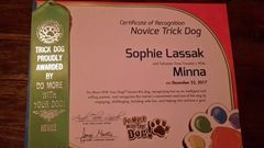 We are proud of Sophie and our girl Minna (Talisman Time Traveler`s Wife) who achieved the Novice Trick Dog Certificate!